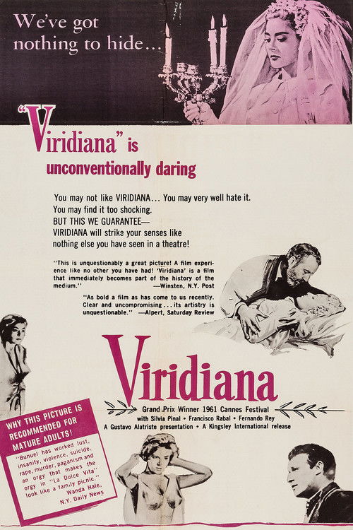 Viridiana is preparing to start her life as a nun when she is sent, somewhat unwillingly, to visit her aging uncle, Don Jaime. He supports her; but the two have met only once. Jaime thinks Viridiana resembles his dead wife. Viridiana has secretly despised this man all her life and finds her worst fears proven when Jaime grows determined to seduce his pure niece. Viridiana becomes undone as her uncle upends the plans she had made to join the convent.